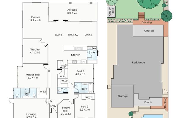 Stepping inside you are greeted by spaciously large hallways which lead effortlessly to the expansive open plan living. This area is the central hub of this exceptional home and offers mesmerising spaces including the kitchen, dining, living, games and theatre rooms. It presents with high ceilings, big window vistas to the backyard, and flows seamlessly through double glass doors to the timber decked alfresco. The well-equipped kitchen comes complete with a stainless steel 5 burner cook top, stainless steel oven, dishwasher, walk in pantry and breakfast bar. The private theatre room can be closed off to the rest of the living and is a perfect activity / retreat area to watch the latest blockbuster, read a book, or just enjoy this peaceful space.