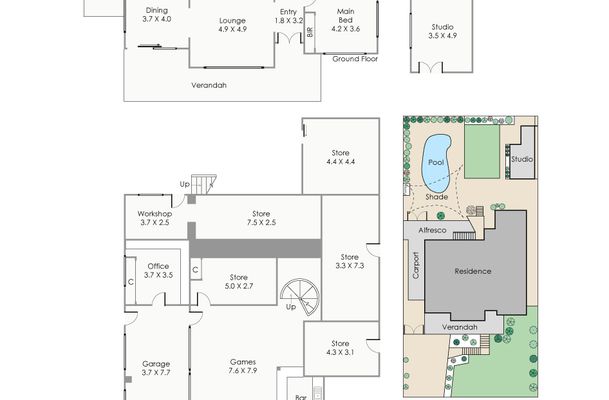 This grand home presents 4 bedrooms, all being queen and king sized. There are three bedrooms upstairs all with ceiling fans and robes with the master to the front with a sizable ensuite and spa bath. The fourth bedroom is the poolside studio with its own bathroom. This home also features a downstairs office, workshop, multiple storage rooms and bore reticulated gardens.